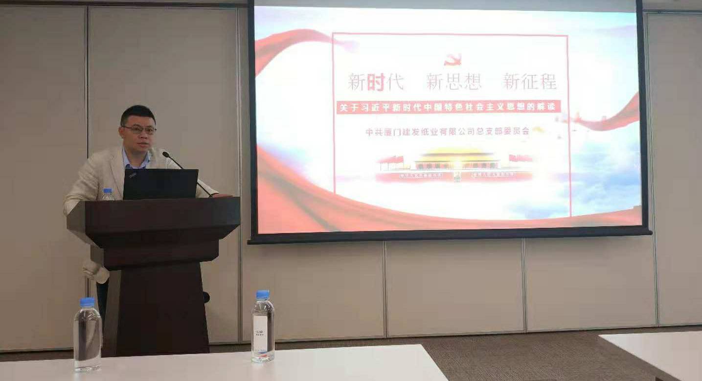 2018年10月23日,乐动登陆入口-乐动online(中国)党总支书记程东方同志在建发大厦23楼4号会议室以《新时代、新思想、新征程——关于习近平新时代中国特色社会主义思想的解读》为主题给纸业公司的党员们做了一次专题党课分享。